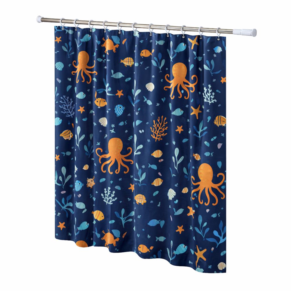 Perdea de baie Blue ocean, 180x180, albastru/gri. Cu 12 inele din plastic în set.