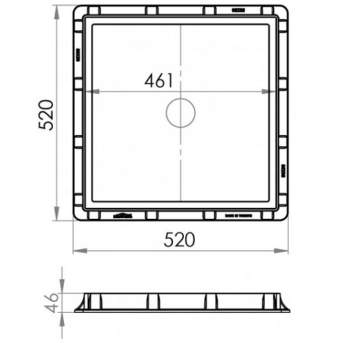 Capac canalizare pătrat din PP, 1,5 tone - 500x500, GriUșor de utilizat pentru grădină, parc, grădinărit, construcții și infrastructură.