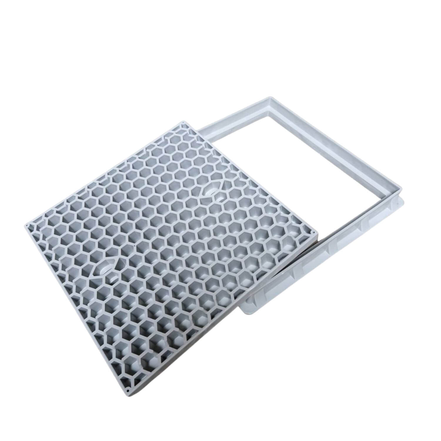 Capac canalizare pătrat din PP cu mânere, 1,8 tone - 600x600, GriUșor de utilizat pentru grădină, parc, grădinărit, construcții și infrastr