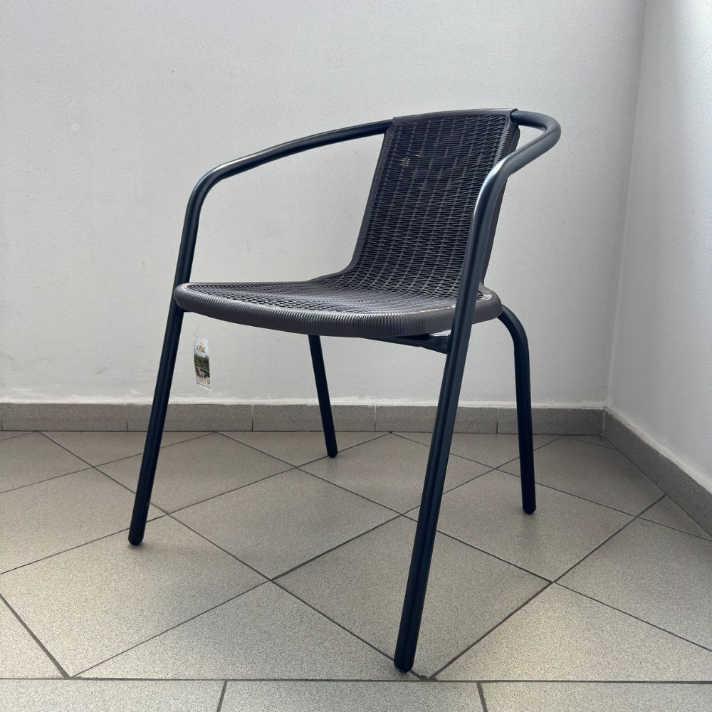 Scaun Littlerock Rattan, plastic / metal, Negru