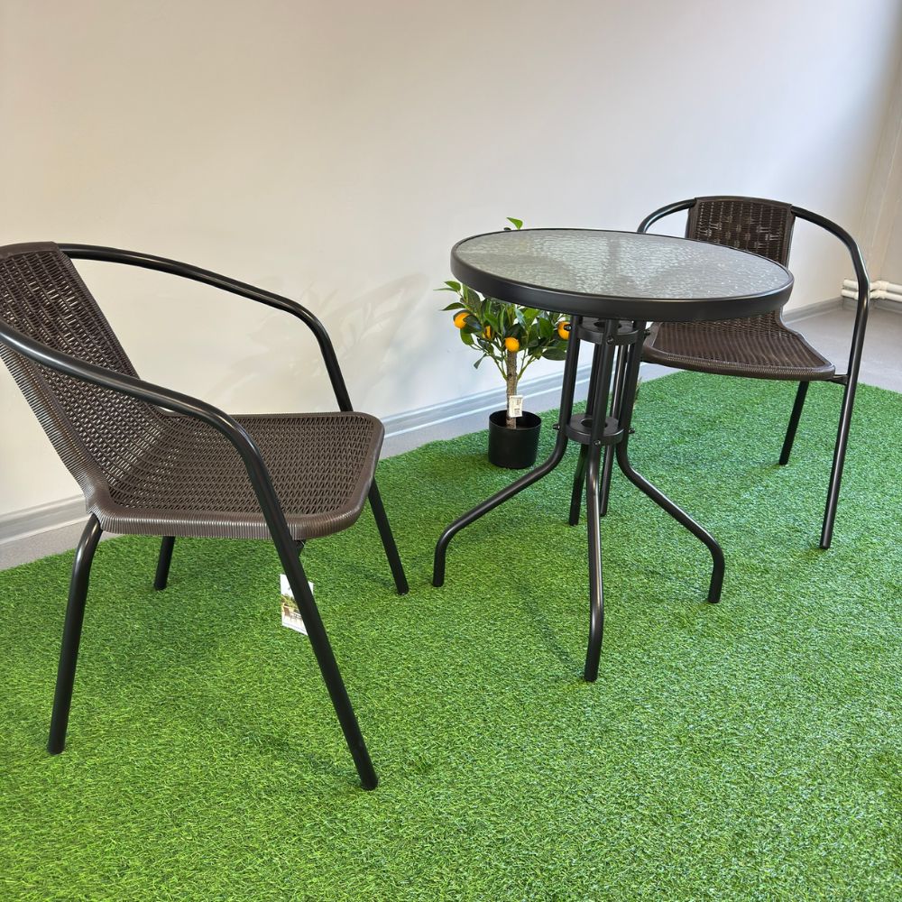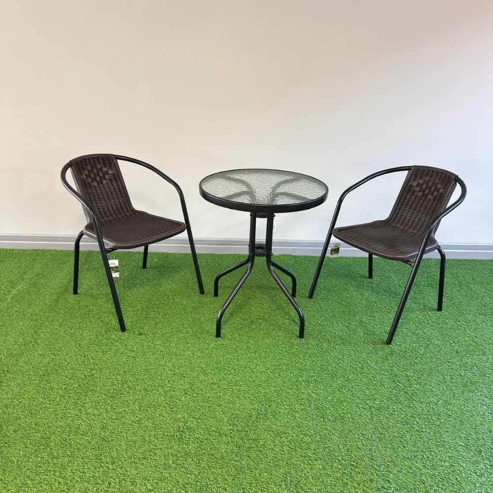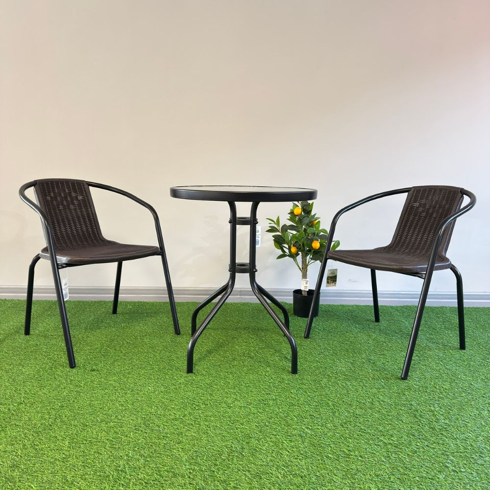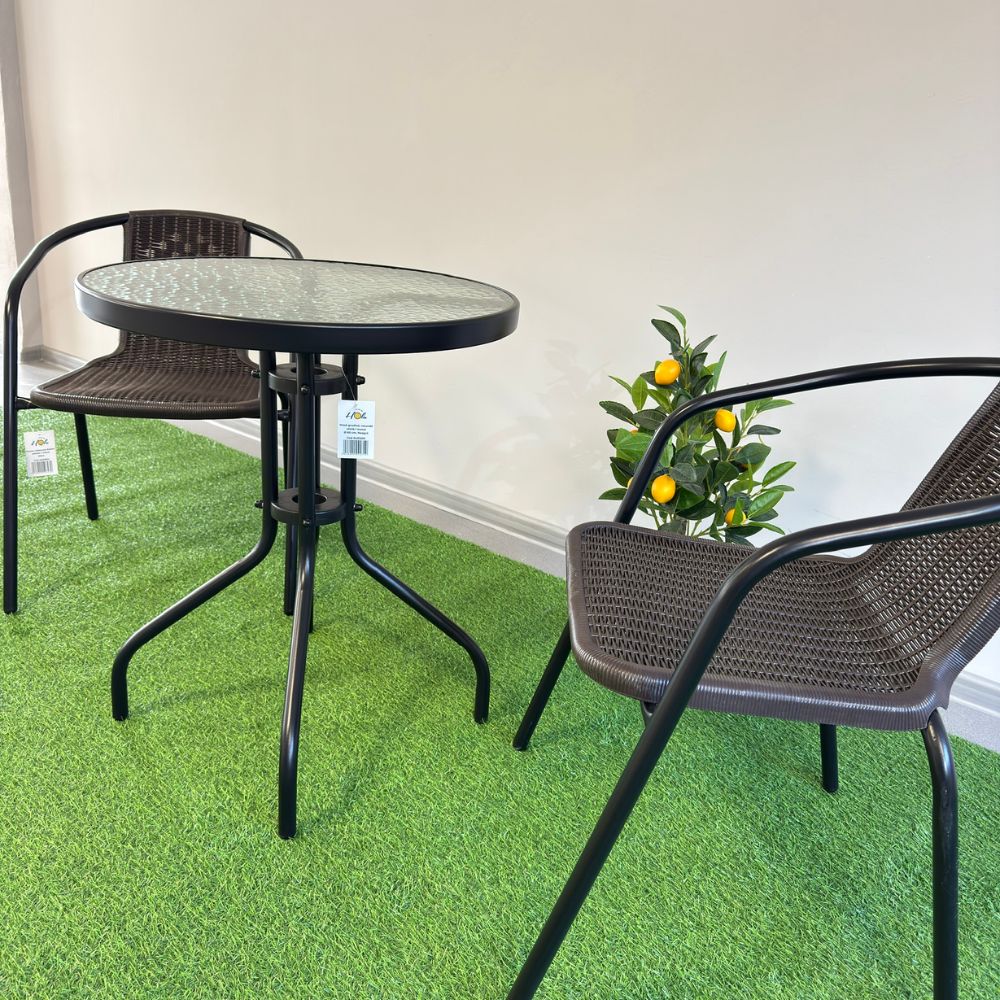 Set Littlerock Rattan, masă și 2 scaune, plastic / metal, Maro