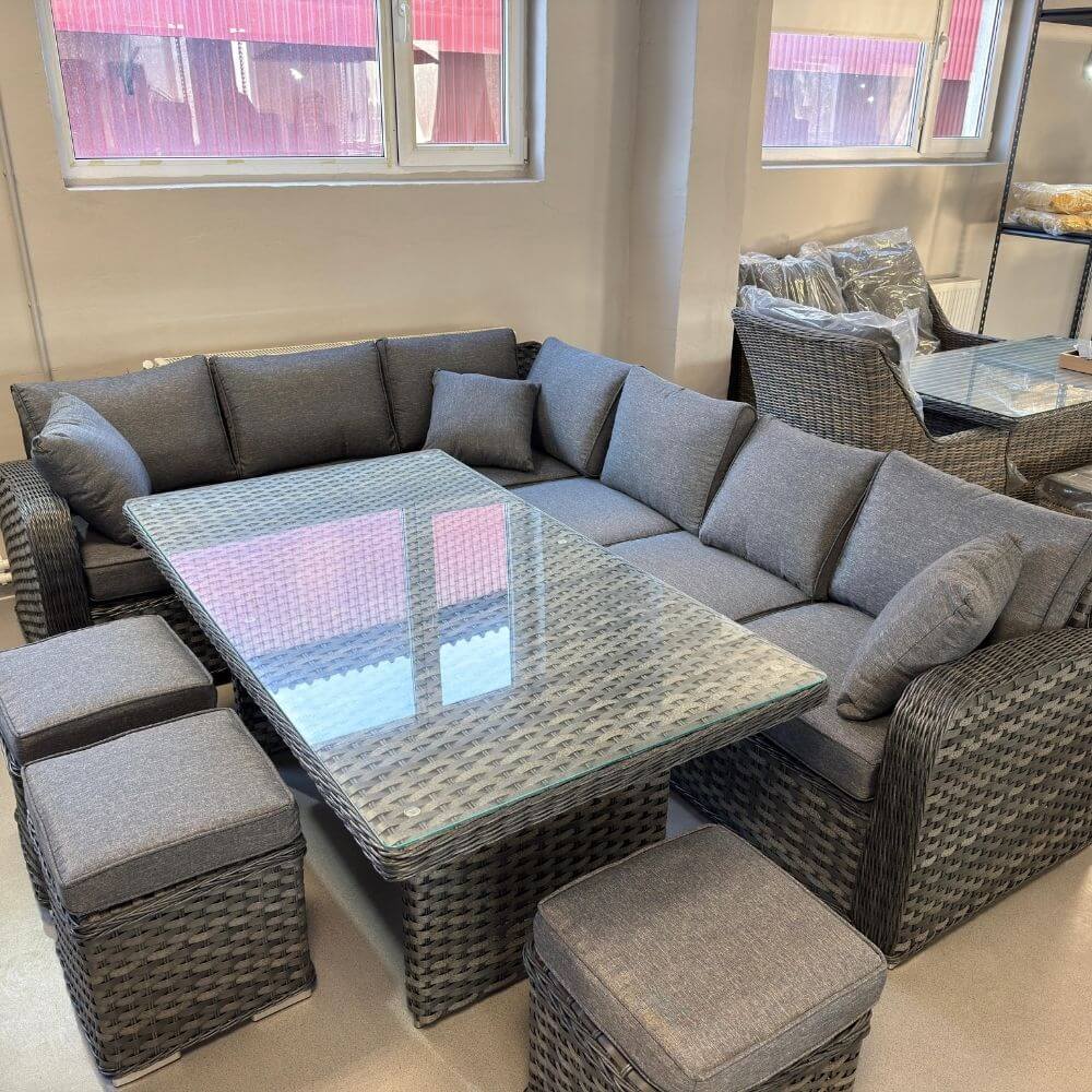 • (1 canapea colțar, 1 canapea cu braț stâng, 1 masă, 3 tabureți, inclusiv perne)