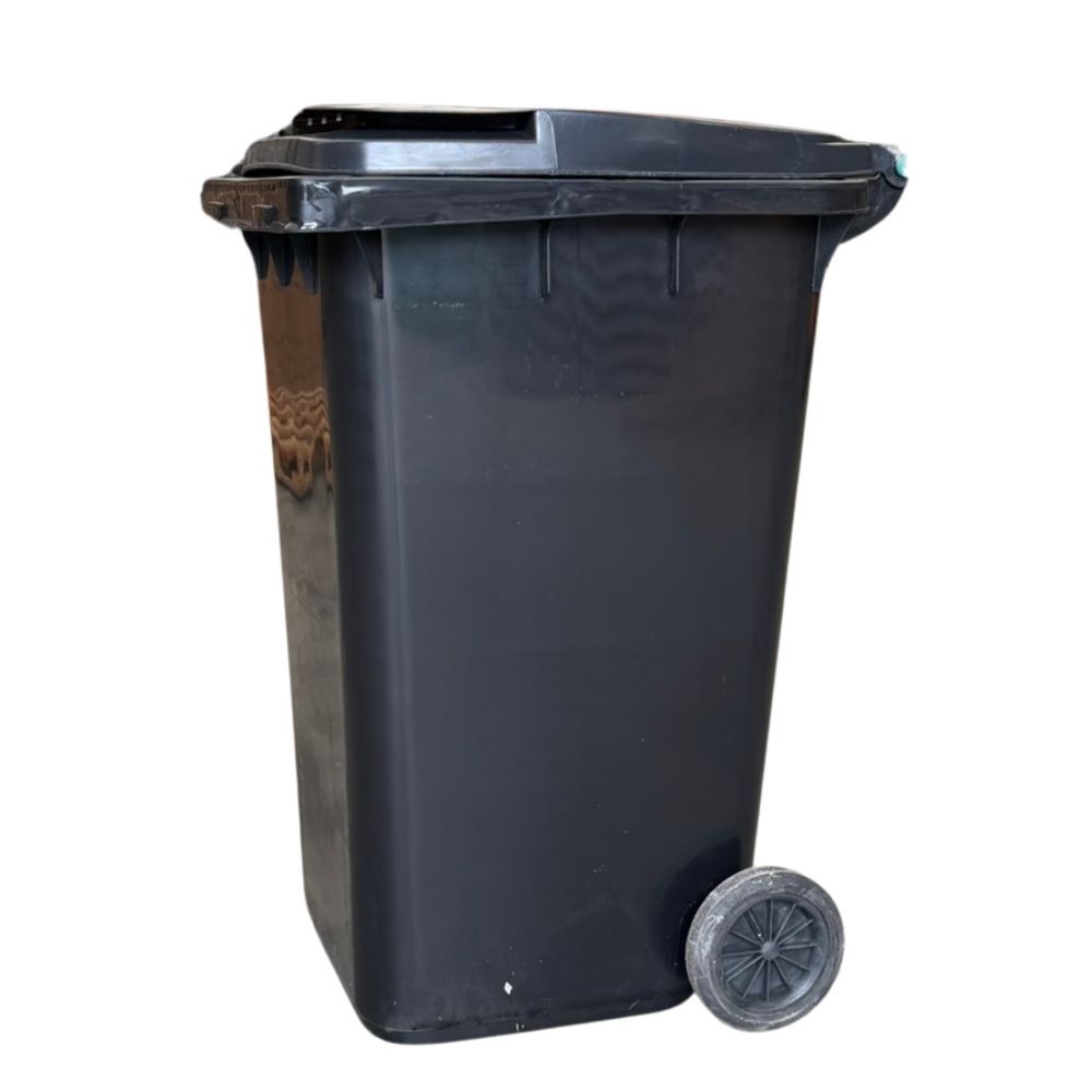 Tomberon din plastic cu capac si roti din cauciuc, 240 L, negru