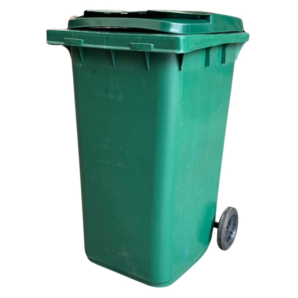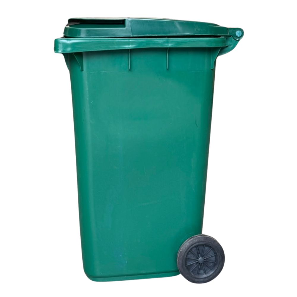 Tomberon din plastic cu capac si roti din cauciuc, 240 L, verde